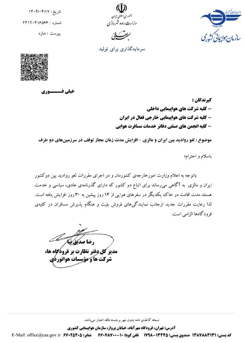 ضروری است نمایندگیهای فروش بلیت و همچنین مسئولان پذیرش مسافران در تمامی فرودگاهها، مقررات جدید را مدنظر قرار داده و از اجرای صحیح آن اطمینان حاصل کنند.